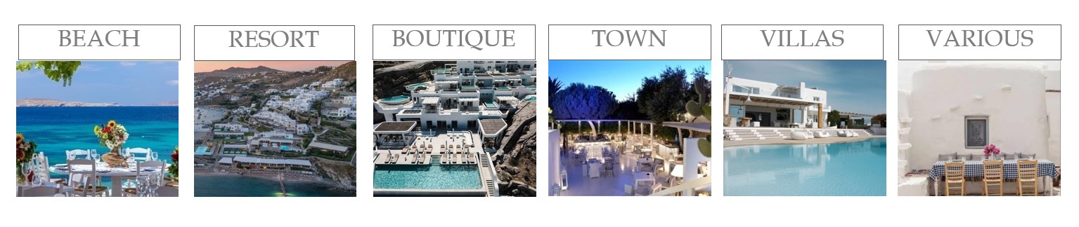In Dream Weddings Mykonos, we classify the island’s venues that offer wedding services according to their location, in the below categories: